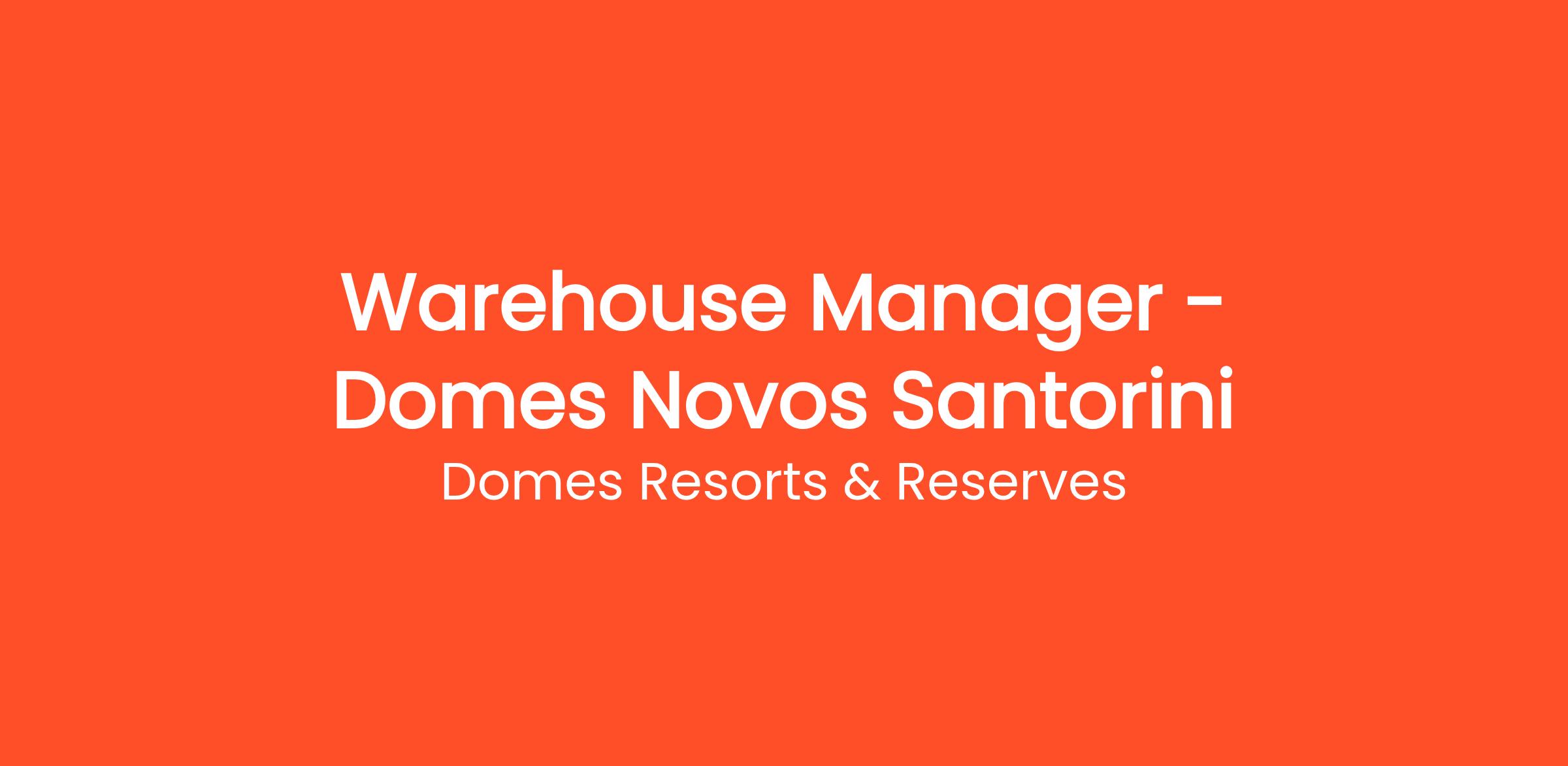 O ξενοδοχειακός όμιλος Domes Resorts, ένας από τους ταχύτερα αναπτυσσόμενους ξενοδοχειακούς ομίλους στη Μεσόγειο, προσλαμβάνει Υπεύθυνο Αποθήκης / Warehouse Manager για το 5* ξενοδοχείο στο νησί της Σαντορίνης, Domes Novos Santorini, The Autograph Collection.