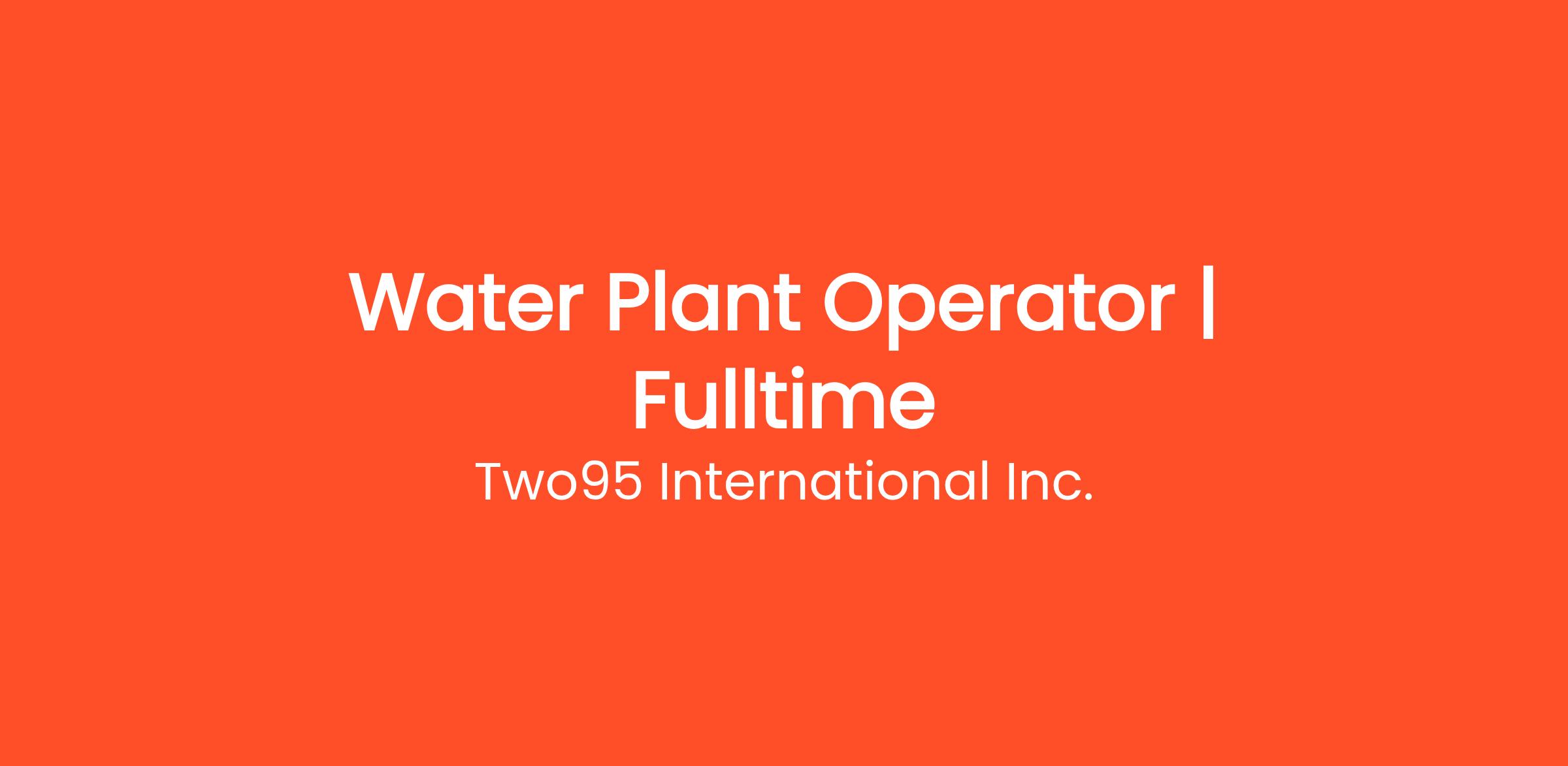 Title: Water Plant Operator