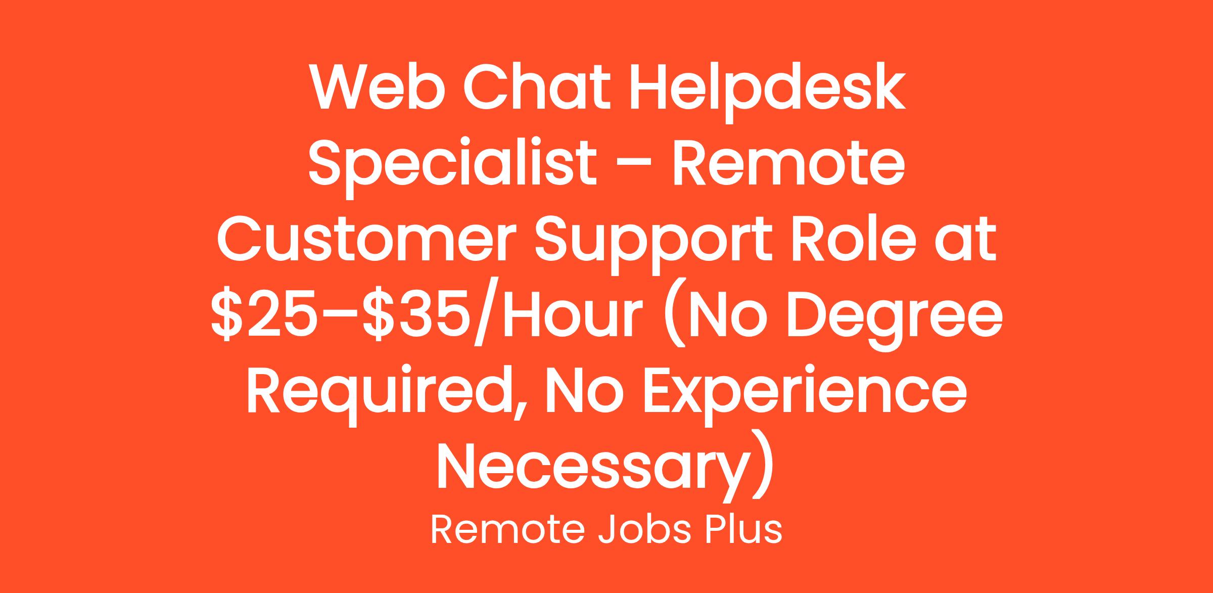 Web Chat Helpdesk Specialist – Remote Customer Support Role at $25–$35/Hour (No Degree Required, No Experience Necessary)
