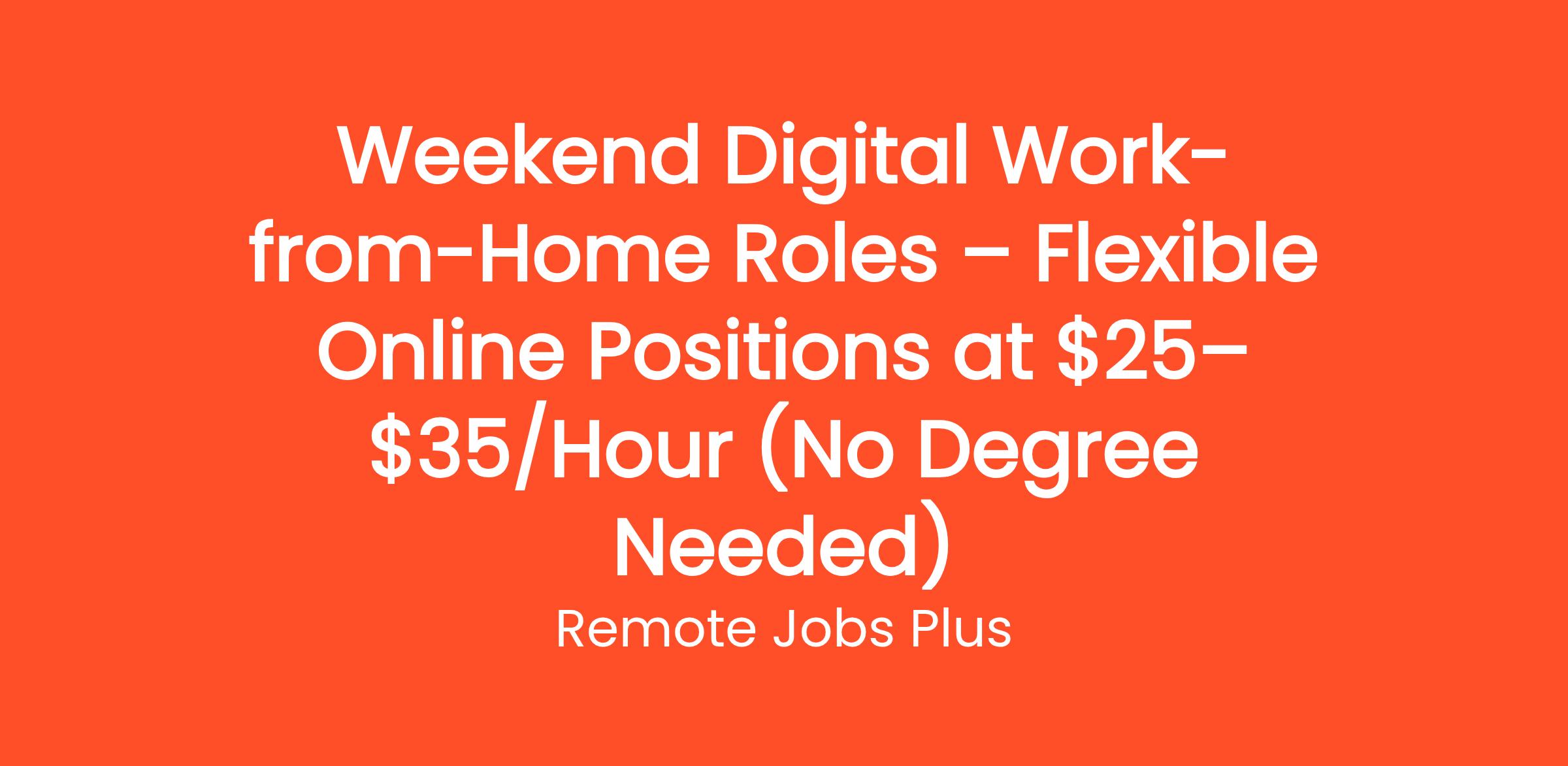 Weekend Digital Work-from-Home Roles – Flexible Online Positions at $25–$35/Hour (No Degree Needed)