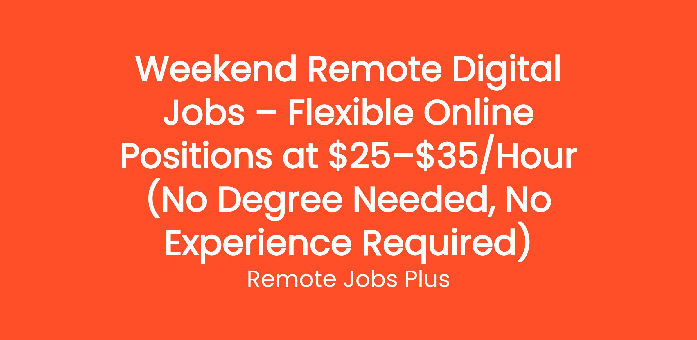 Weekend Remote Digital Jobs – Flexible Online Positions at $25–$35/Hour (No Degree Needed, No Experience Required)