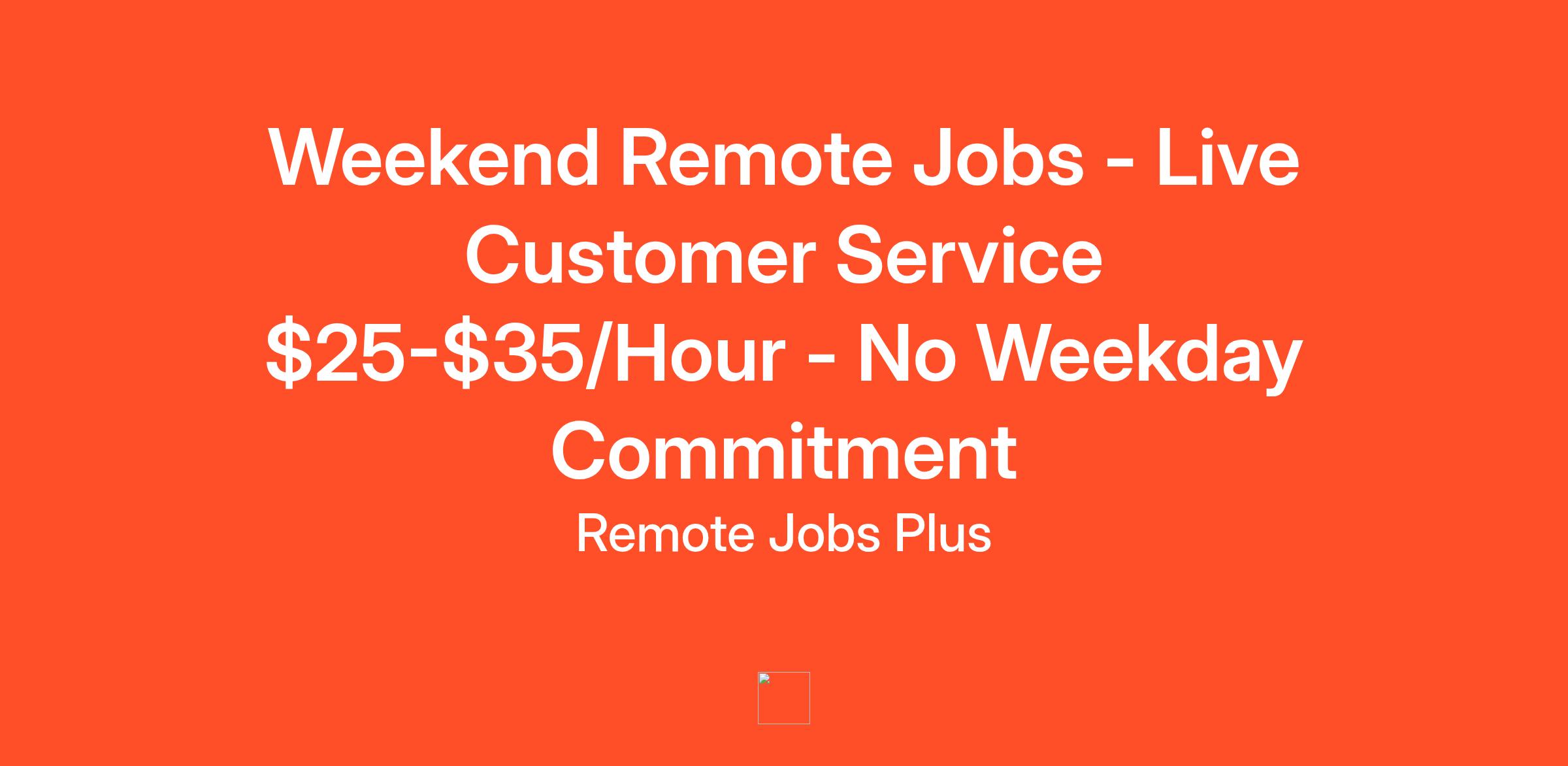 Weekend Solutions NetworkPosition: Weekend Live Customer Service SpecialistSchedule: Saturday and Sunday OnlyHourly Rate: $25-$35 Plus Weekend PremiumsTime Requirement: 8-20 Hours Per WeekendWeekday Schedule: No Weekday Work RequiredWork Location: Remote - Anywhere in USA