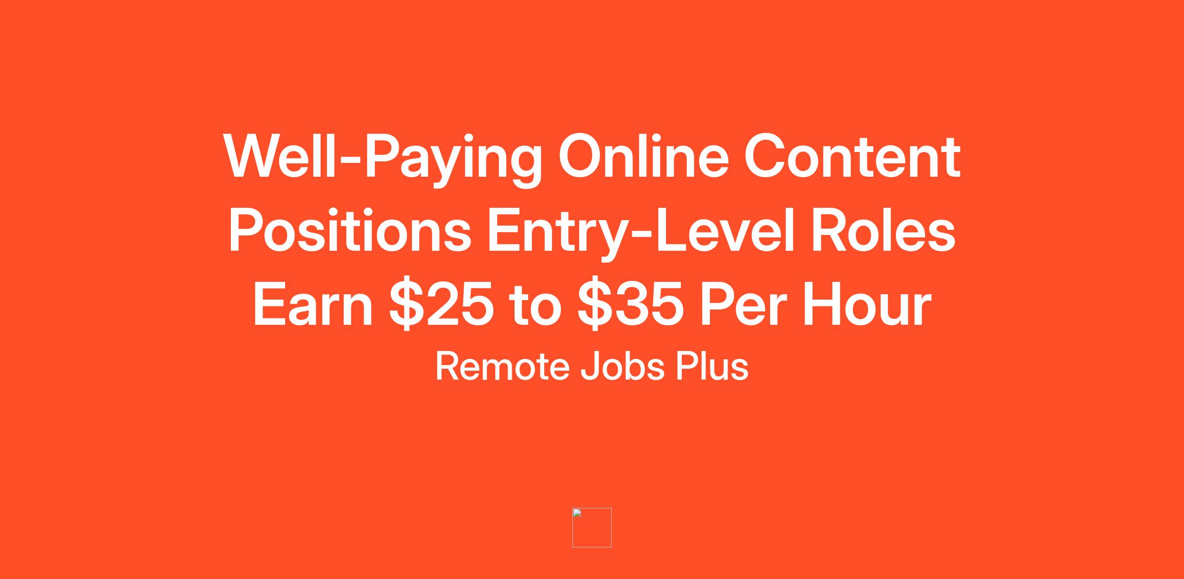 Well-Paying Online Content Positions Entry-Level Roles Earn $25 to $35 Per Hour