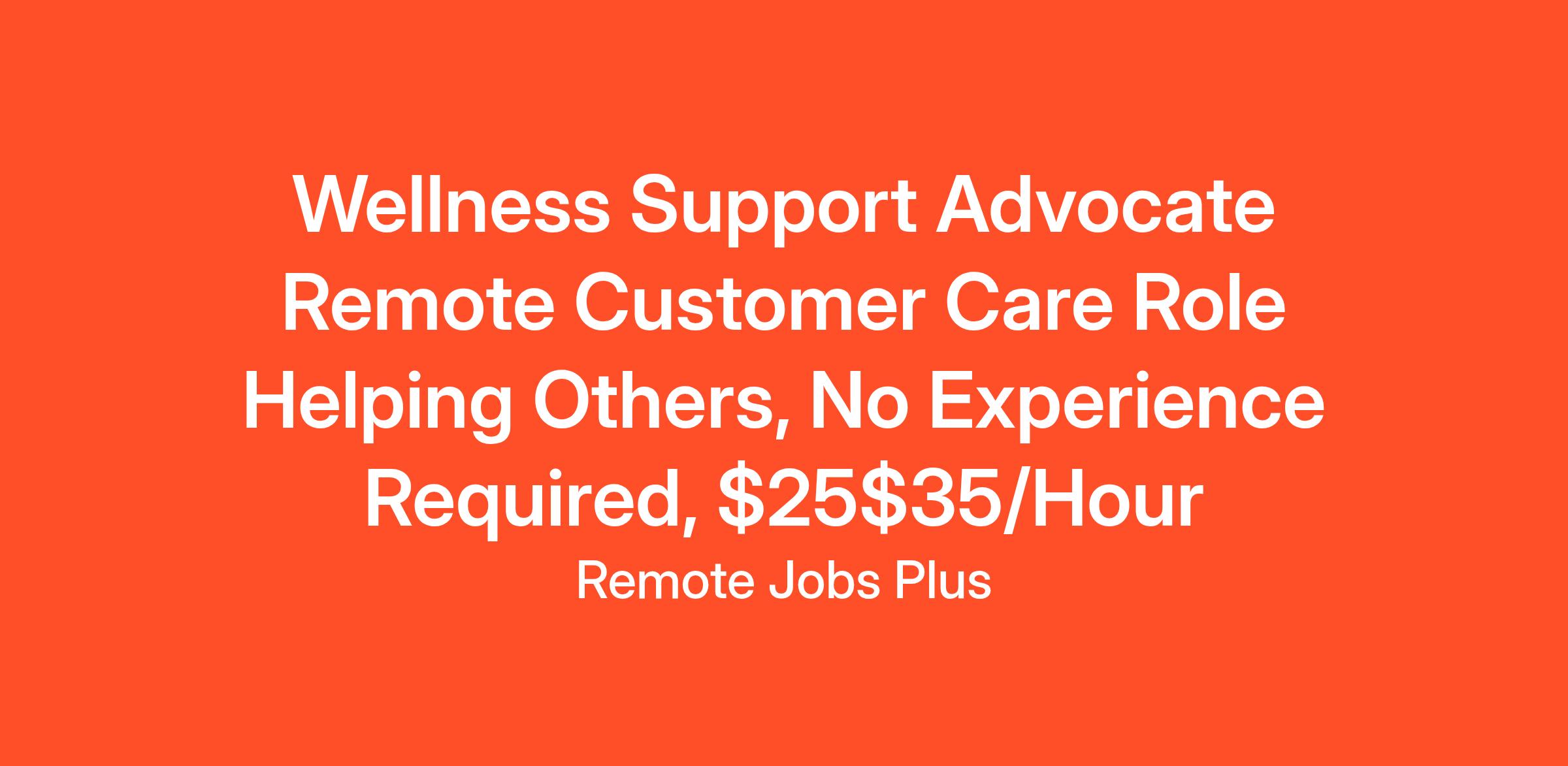 Wellness Support Advocate Remote Customer Care Role Helping Others, No Experience Required, $25$35/Hour