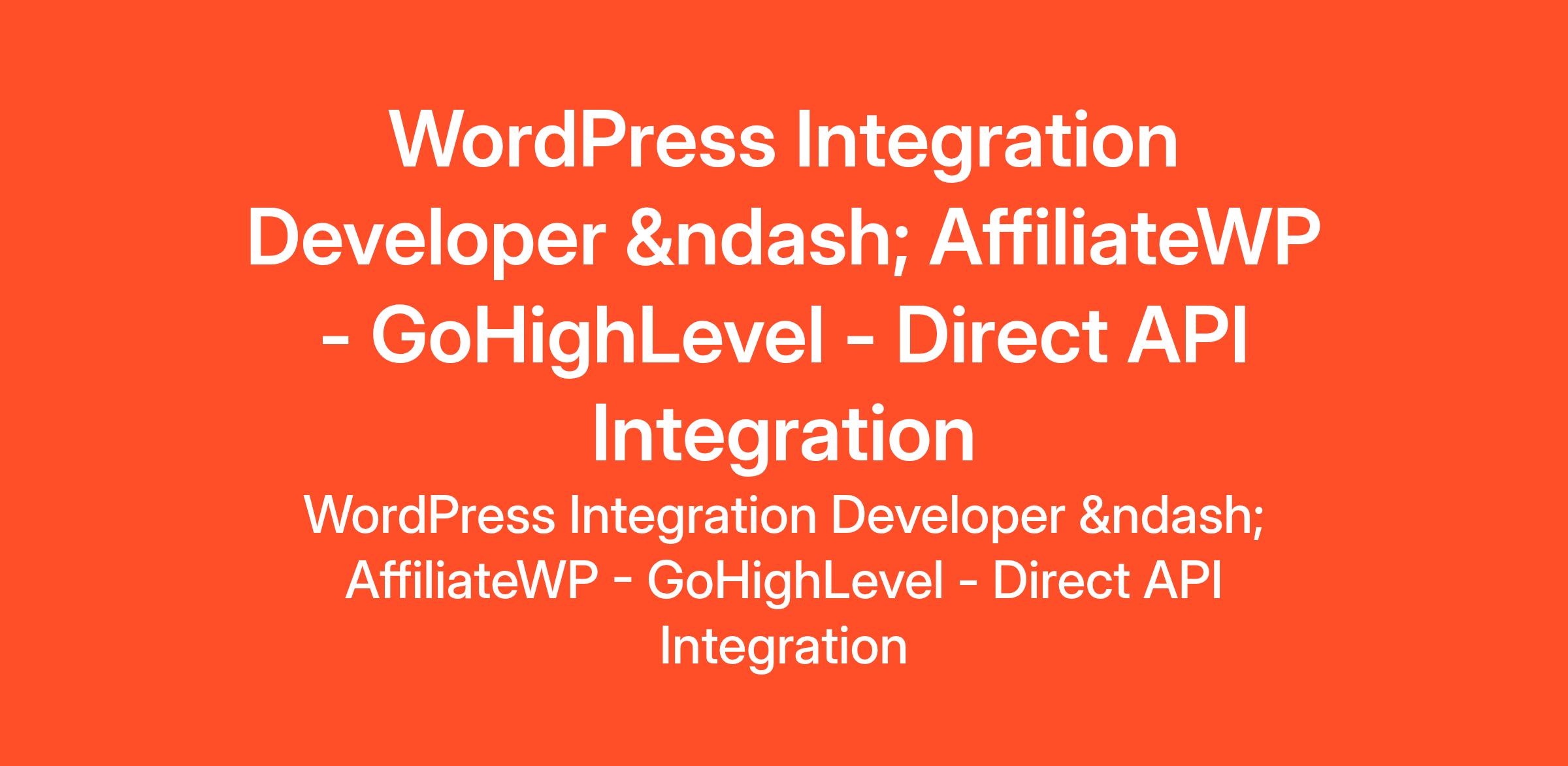 OVERVIEW We are looking for a WordPress integration developer. The task is to build a direct API-based integration. The integration is between AffiliateWP (WordPress) and GoHighLevel (CRM). Zapier or third-party automation tools must NOT be used... (Budget: $1500 - $3000 AUD, Jobs: API Integration, HTML, JSON, PHP, REST API, Software Architecture, Software Development, WordPress)
