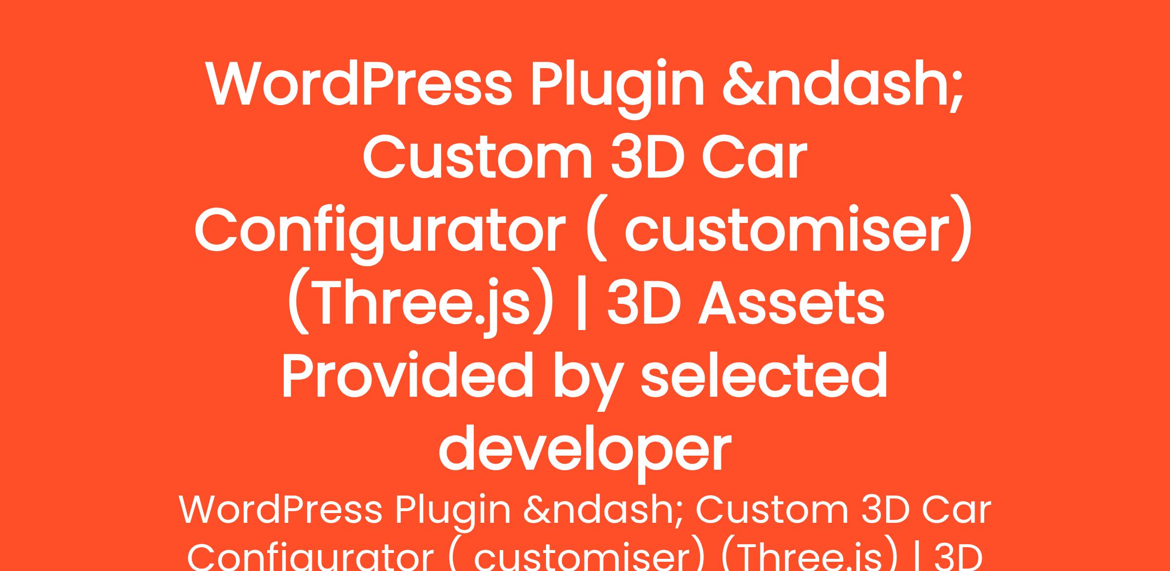 I do NOT have anything i need wordpress plugin.. No 3D models No assets I have name i will share No base code 3D Car Customization (Real 3D Model) This is a fully interactive 3D experience where users can rotate the car and customize parts in real time... (Budget: ₹600 - ₹22000 INR, Jobs: 3D Design, 3D Modelling, 3D Rendering, JavaScript, jQuery / Prototype, PHP, Three.js, WordPress, WordPress Design, WordPress Plugin)
