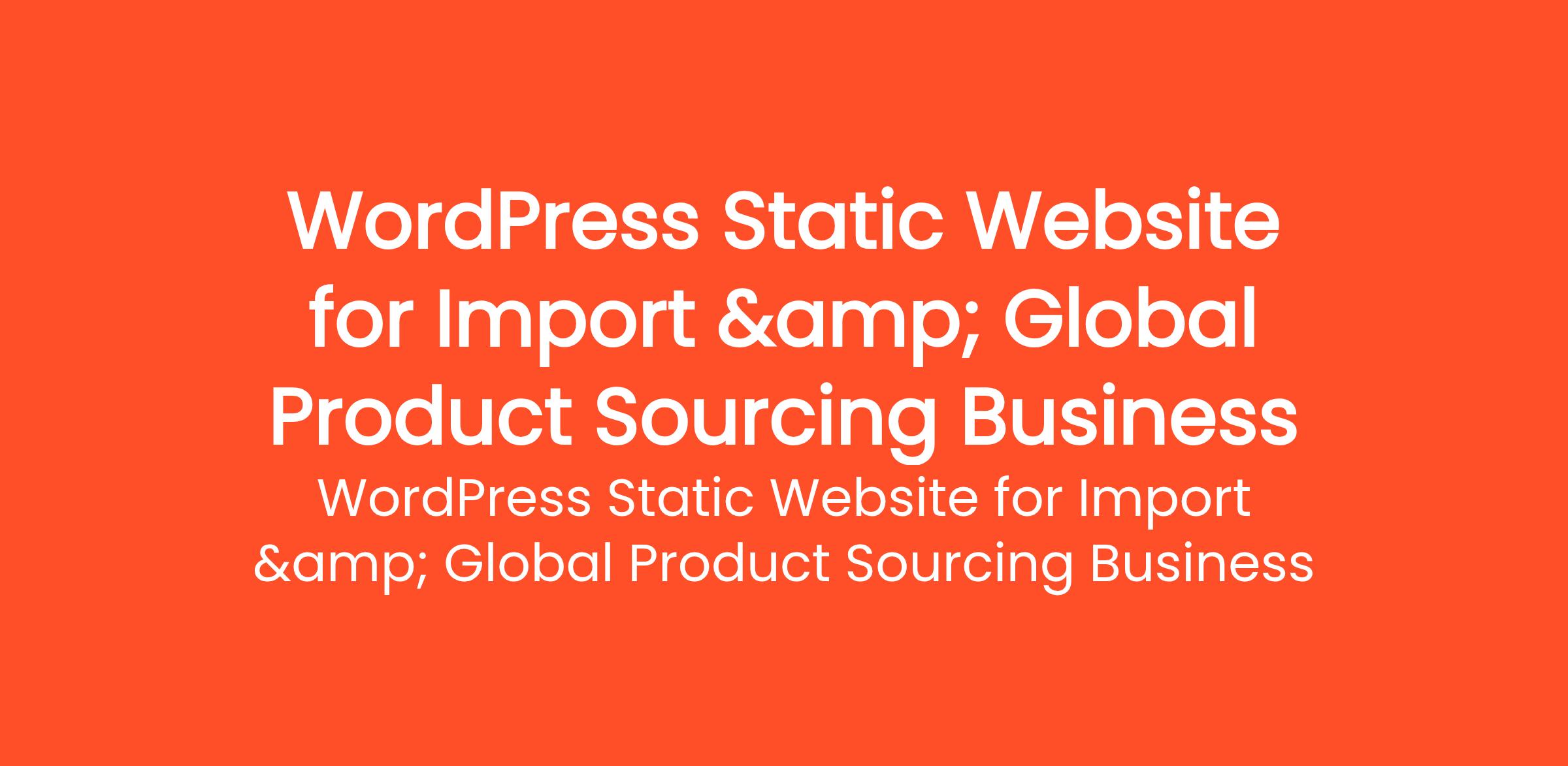 Project Description We are an importer and global product sourcing company. We supply different types of products for businesses worldwide. We need a professional WordPress website to showcase our services and generate customer enquiries... (Budget: ₹2000 - ₹5000 INR, Jobs: CSS, HTML, Hugo, JavaScript, Netlify, PHP, SEO, Web Design, Web Development, Website Design)