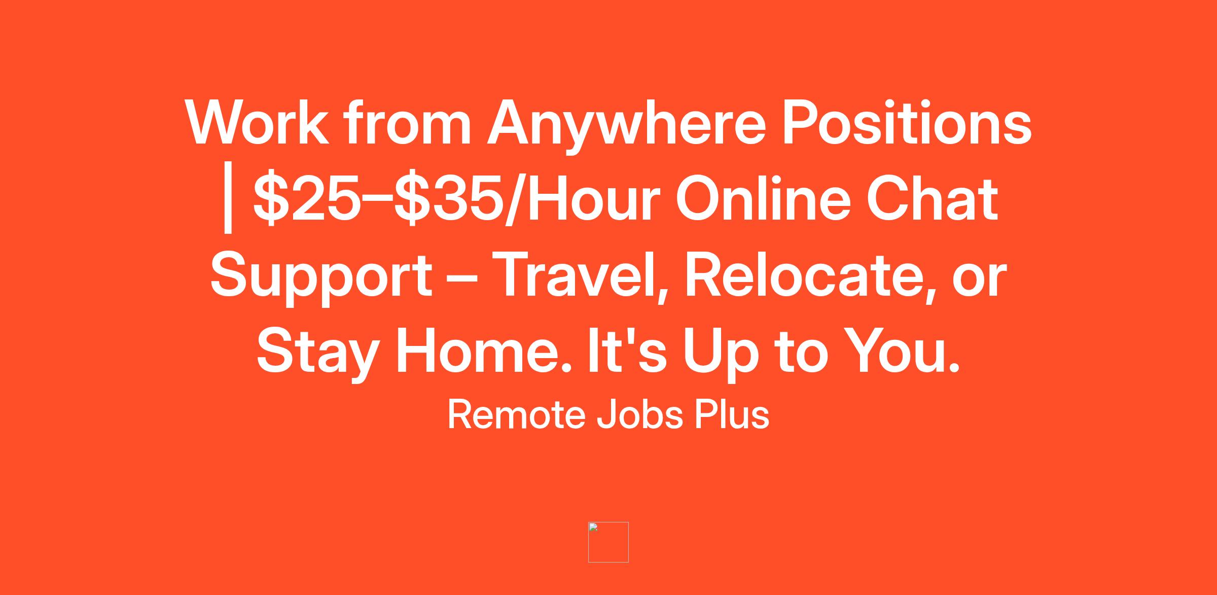 If you typed in “work from anywhere jobs,” you’re probably not looking for a typical 9-to-5. Maybe you’re traveling, planning a move, or just want the freedom to work from your couch one day and a mountain cabin the next. We’re hiring Remote Chat Support Specialists who want full flexibility and reliable pay. Earn $25–$35/hour helping customers via live chat—no phone calls, no offices, no location lock.