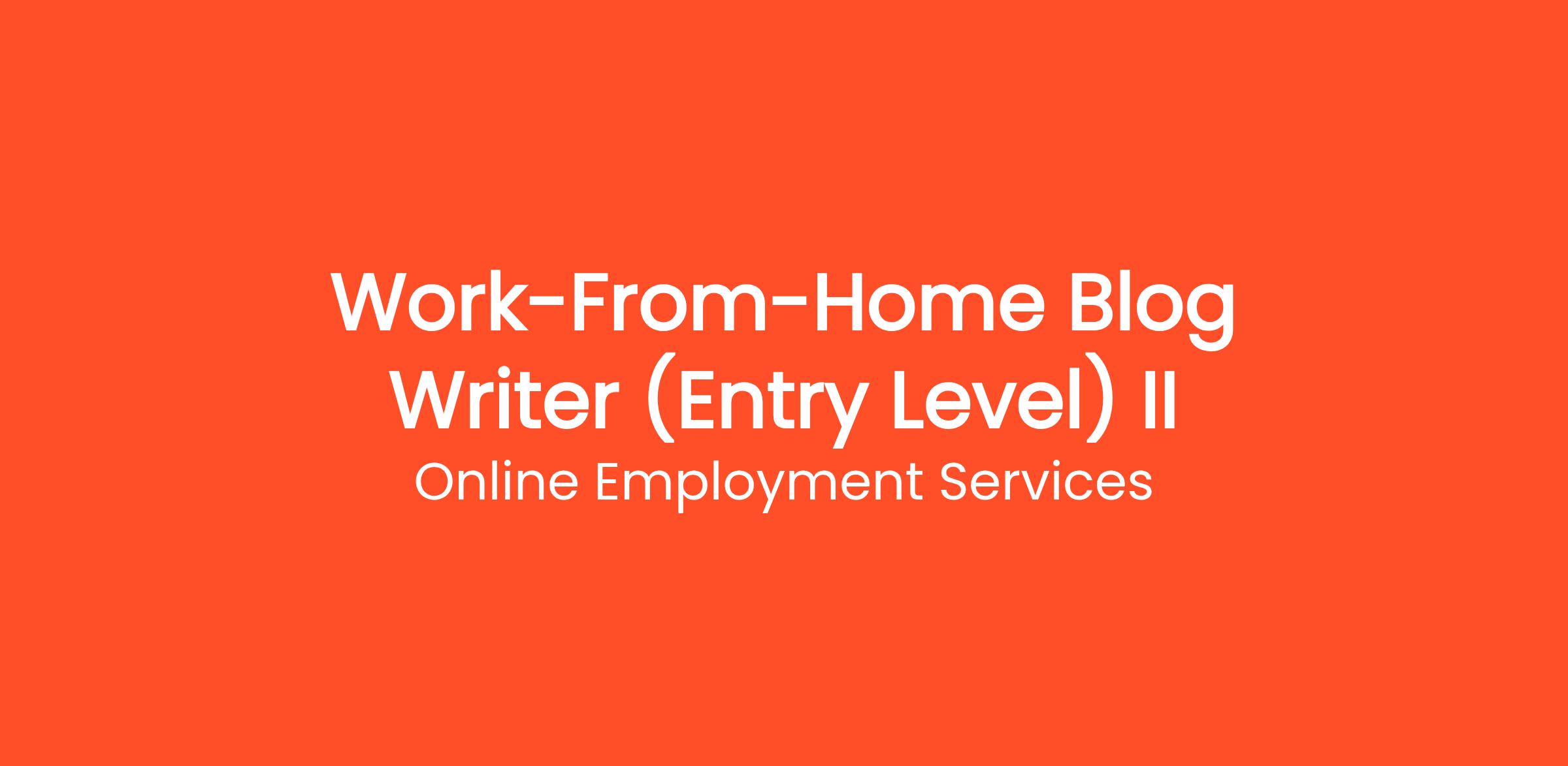 Online Employment Services is currently looking for motivated individuals to join our team as a Work-From-Home Blog Writer (Entry Level) II. Earn money writing articles, blogs, and product descriptions from home. Flexible hours, multiple niches available, weekly pay. This is a fully remote, work-from-home position that can be done from anywhere in the United States. No prior experience is required — just a reliable internet connection and the motivation to learn. Whether you're looking to replace your current income or simply earn extra cash on the side, this flexible opportunity allows you to work as much or as little as you want.