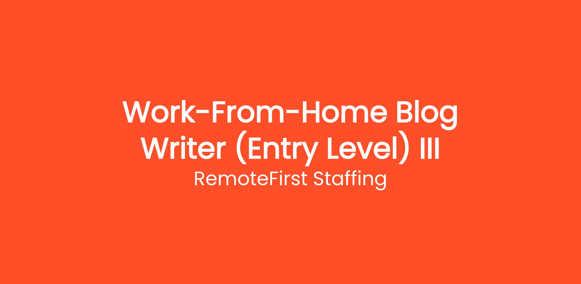 Thousands of people are already working from home as a Work-From-Home Blog Writer (Entry Level) III with RemoteFirst Staffing. Earn money writing articles, blogs, and product descriptions from home. Flexible hours, multiple niches available, weekly pay. This work-from-home opportunity requires no commute, no degree, and no special prior experience. Get started on your own terms — choose your own hours and work as many or as few hours per week as you need. Payouts are processed regularly with multiple withdrawal options so you always get paid on time.