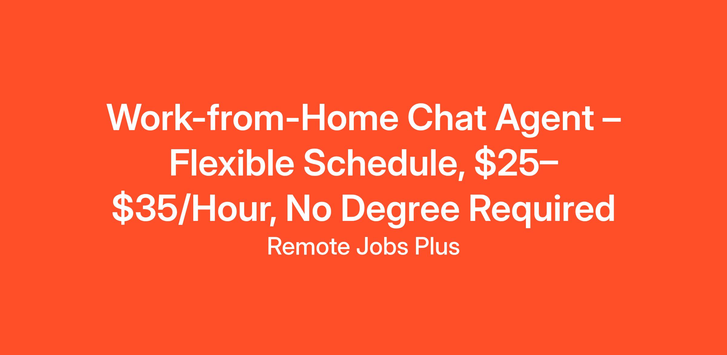 We are seeking a Remote Chat Agent to join our team. As a Remote Chat Agent, you will be responsible for providing customer support via chat. This is a remote position, and we offer competitive pay of $25-$35 an hour with a flexible schedule.
