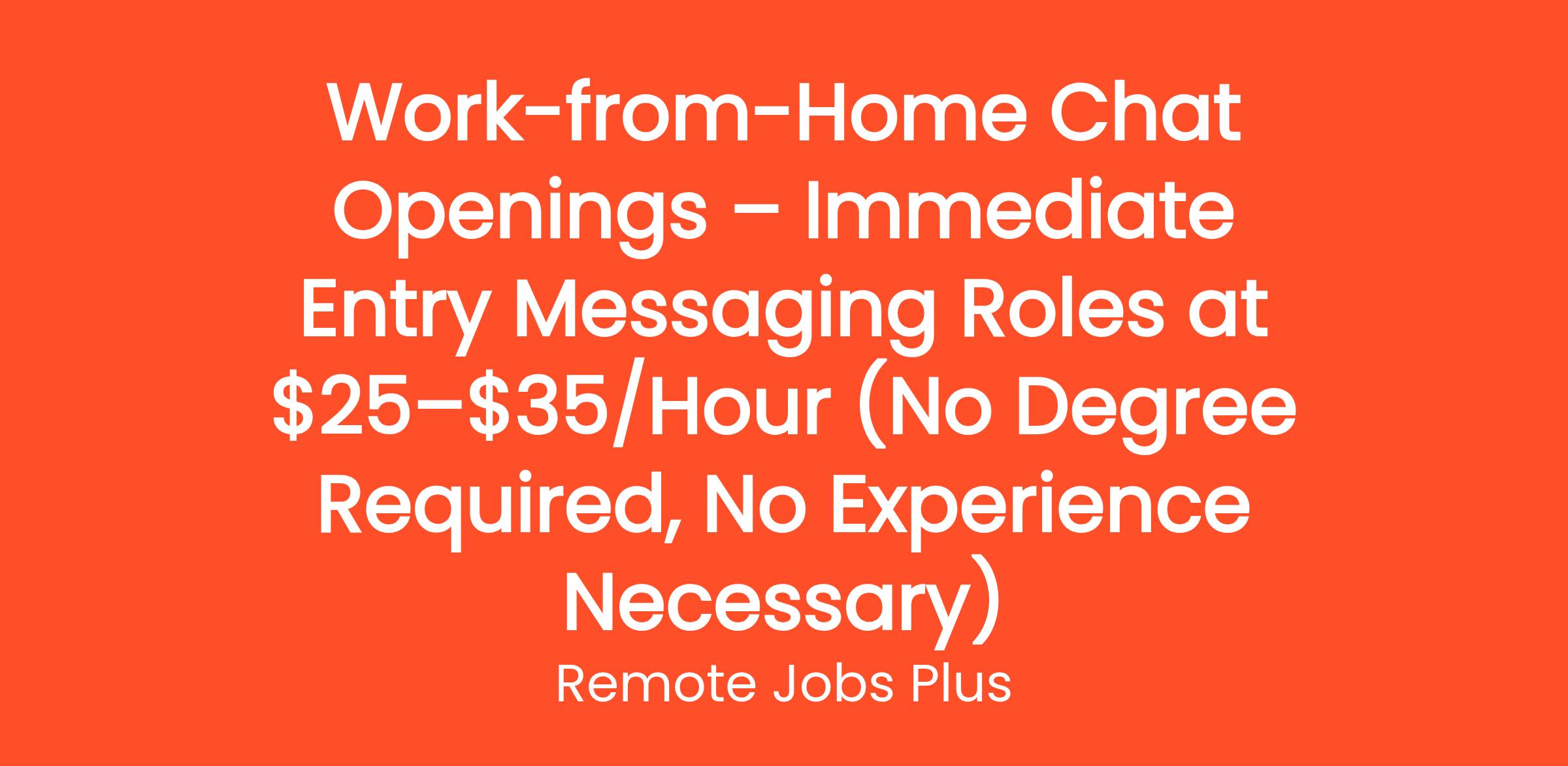 Work-from-Home Chat Openings – Immediate Entry Messaging Roles at $25–$35/Hour (No Degree Required, No Experience Necessary)