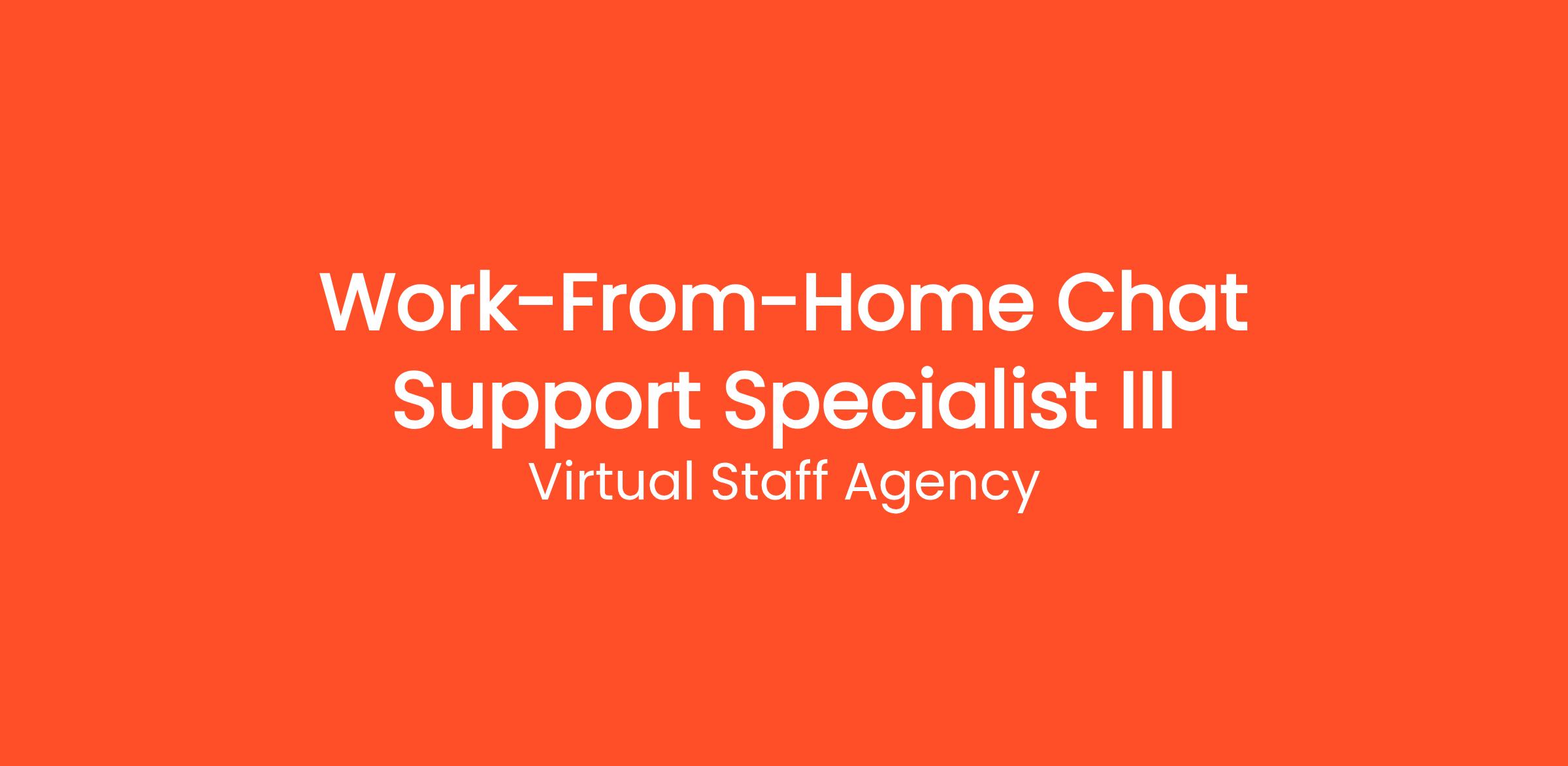 Thousands of people are already working from home as a Work-From-Home Chat Support Specialist III with Virtual Staff Agency. Earn money answering live chat messages on websites — no phone calls, no experience needed, and 100% work from home. This work-from-home opportunity requires no commute, no degree, and no special prior experience. Get started on your own terms — choose your own hours and work as many or as few hours per week as you need. Payouts are processed regularly with multiple withdrawal options so you always get paid on time.