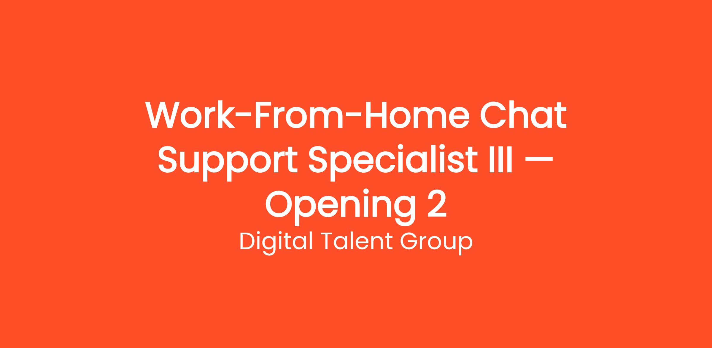 Are you looking for a flexible, legitimate way to earn money online? Join Digital Talent Group as a Work-From-Home Chat Support Specialist III — Opening 2. Earn money answering live chat messages on websites — no phone calls, no experience needed, and 100% work from home. This role is 100% remote and beginner-friendly. We welcome candidates from all backgrounds — stay-at-home parents, students, retirees, and career changers are all encouraged to apply. You control your own schedule and can start earning quickly after a simple onboarding process.