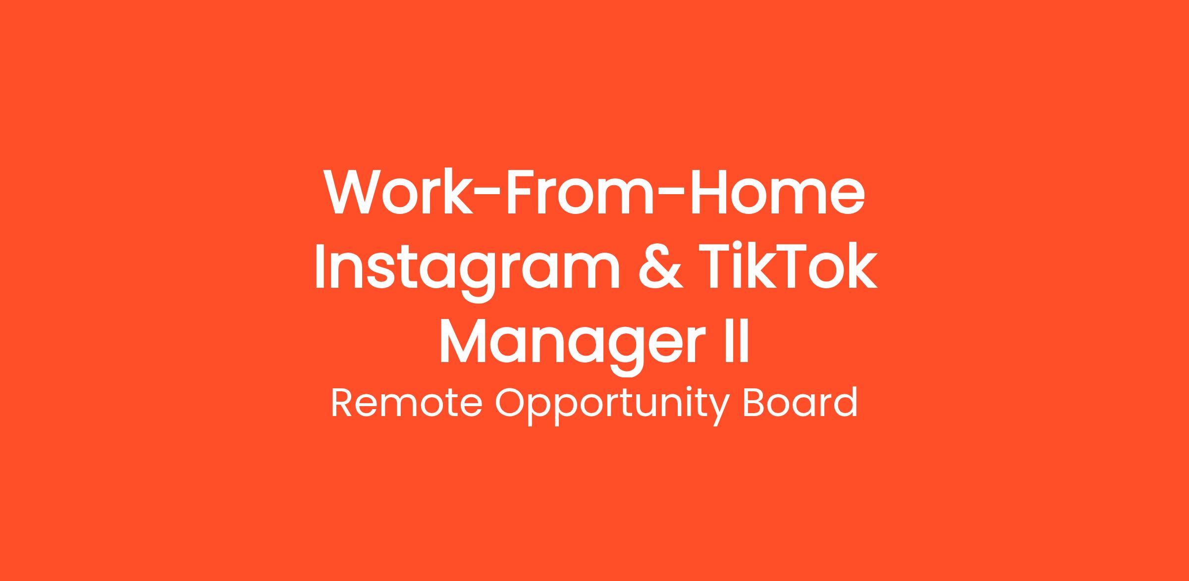 Thousands of people are already working from home as a Work-From-Home Instagram & TikTok Manager II with Remote Opportunity Board. Get paid to manage social media accounts from home. Work with brands on Instagram, TikTok, Facebook, and more — no degree required. This work-from-home opportunity requires no commute, no degree, and no special prior experience. Get started on your own terms — choose your own hours and work as many or as few hours per week as you need. Payouts are processed regularly with multiple withdrawal options so you always get paid on time.