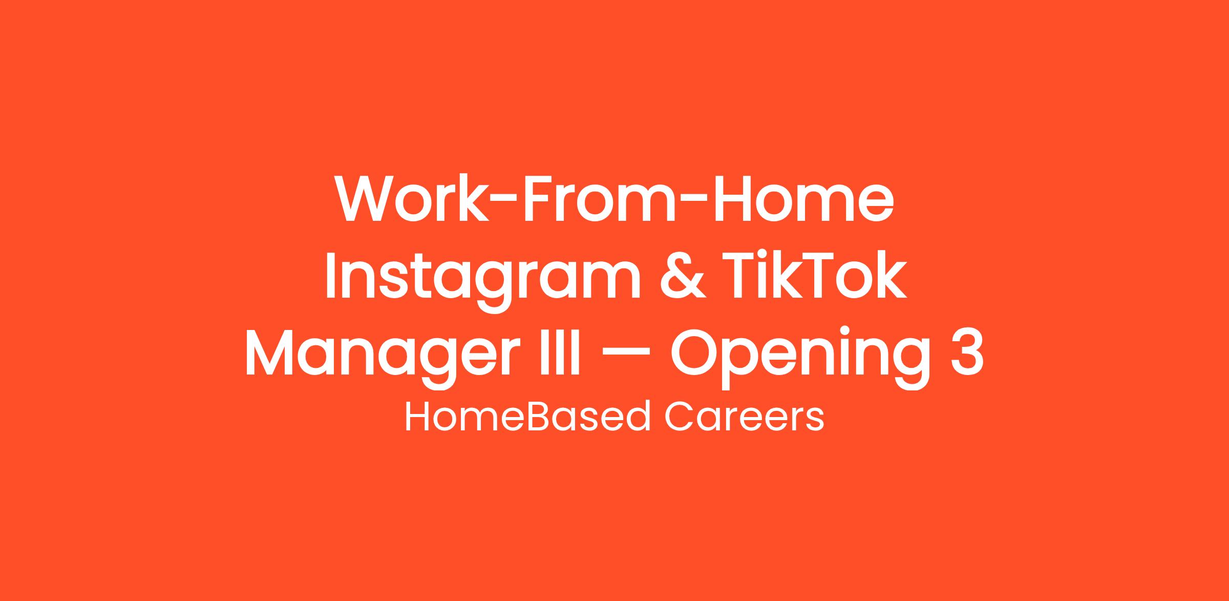 HomeBased Careers is currently looking for motivated individuals to join our team as a Work-From-Home Instagram & TikTok Manager III — Opening 3. Get paid to manage social media accounts from home. Work with brands on Instagram, TikTok, Facebook, and more — no degree required. This is a fully remote, work-from-home position that can be done from anywhere in the United States. No prior experience is required — just a reliable internet connection and the motivation to learn. Whether you're looking to replace your current income or simply earn extra cash on the side, this flexible opportunity allows you to work as much or as little as you want.
