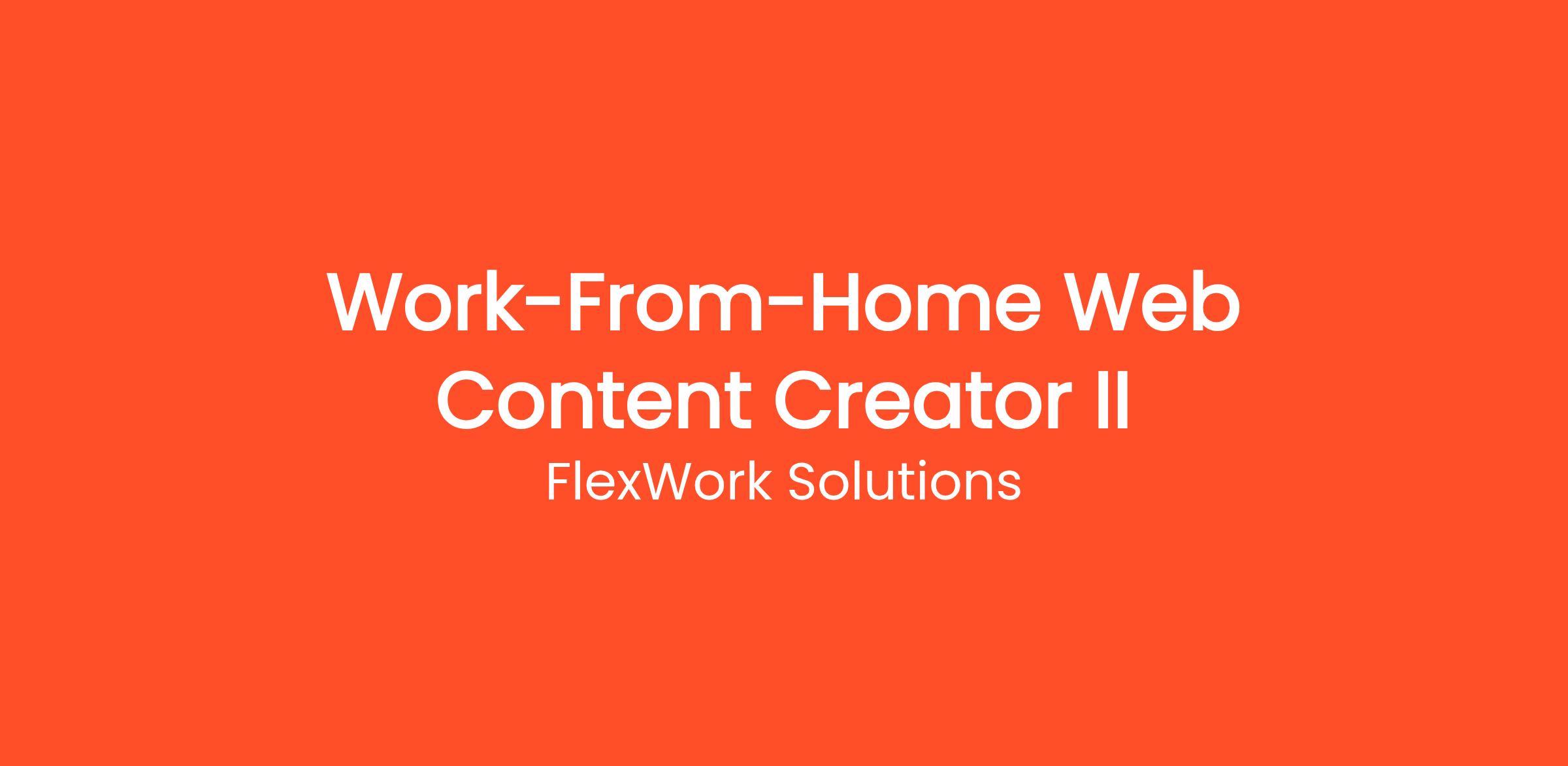 FlexWork Solutions is currently looking for motivated individuals to join our team as a Work-From-Home Web Content Creator II. Earn money writing articles, blogs, and product descriptions from home. Flexible hours, multiple niches available, weekly pay. This is a fully remote, work-from-home position that can be done from anywhere in the United States. No prior experience is required — just a reliable internet connection and the motivation to learn. Whether you're looking to replace your current income or simply earn extra cash on the side, this flexible opportunity allows you to work as much or as little as you want.