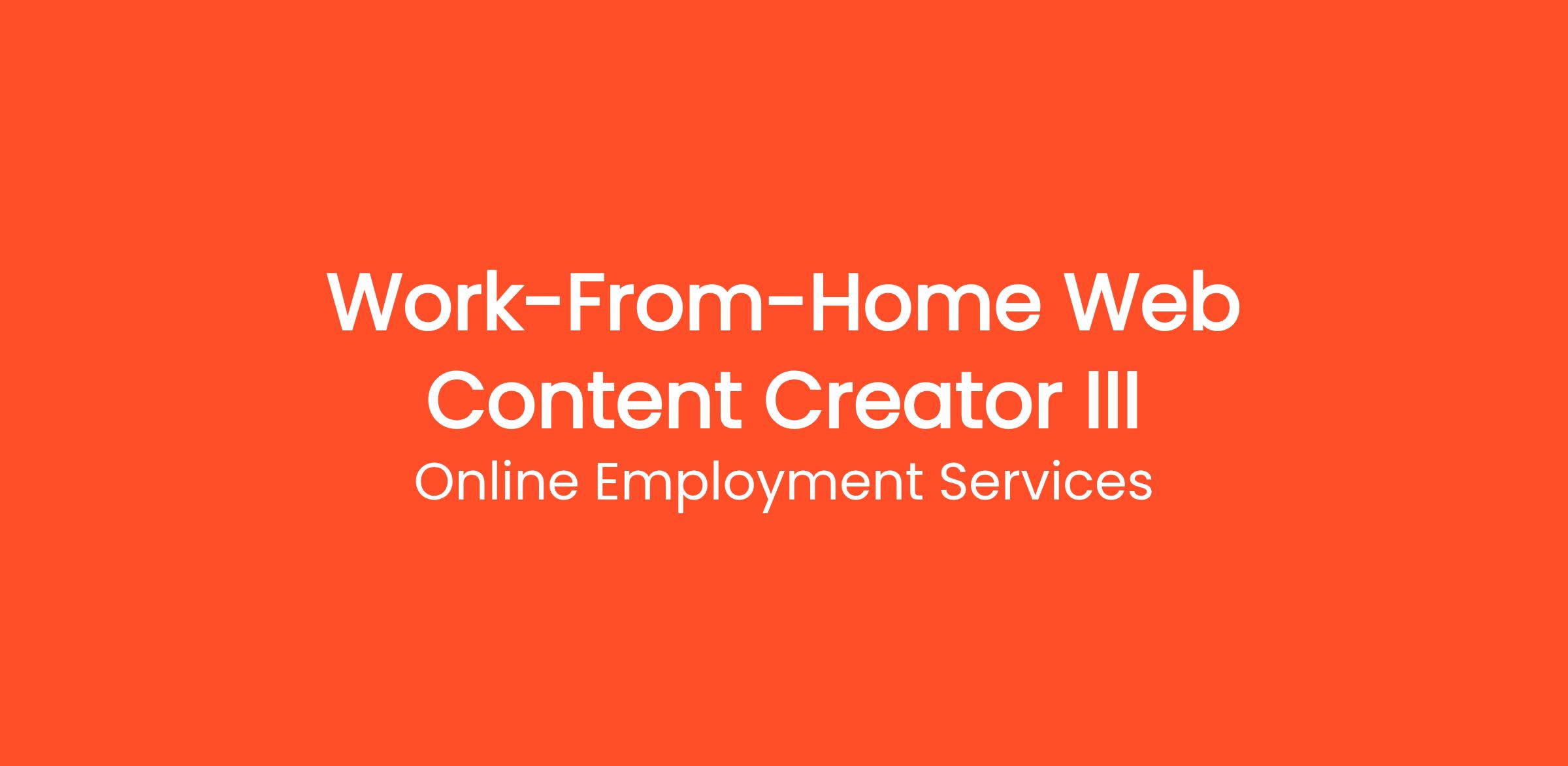 Thousands of people are already working from home as a Work-From-Home Web Content Creator III with Online Employment Services. Earn money writing articles, blogs, and product descriptions from home. Flexible hours, multiple niches available, weekly pay. This work-from-home opportunity requires no commute, no degree, and no special prior experience. Get started on your own terms — choose your own hours and work as many or as few hours per week as you need. Payouts are processed regularly with multiple withdrawal options so you always get paid on time.