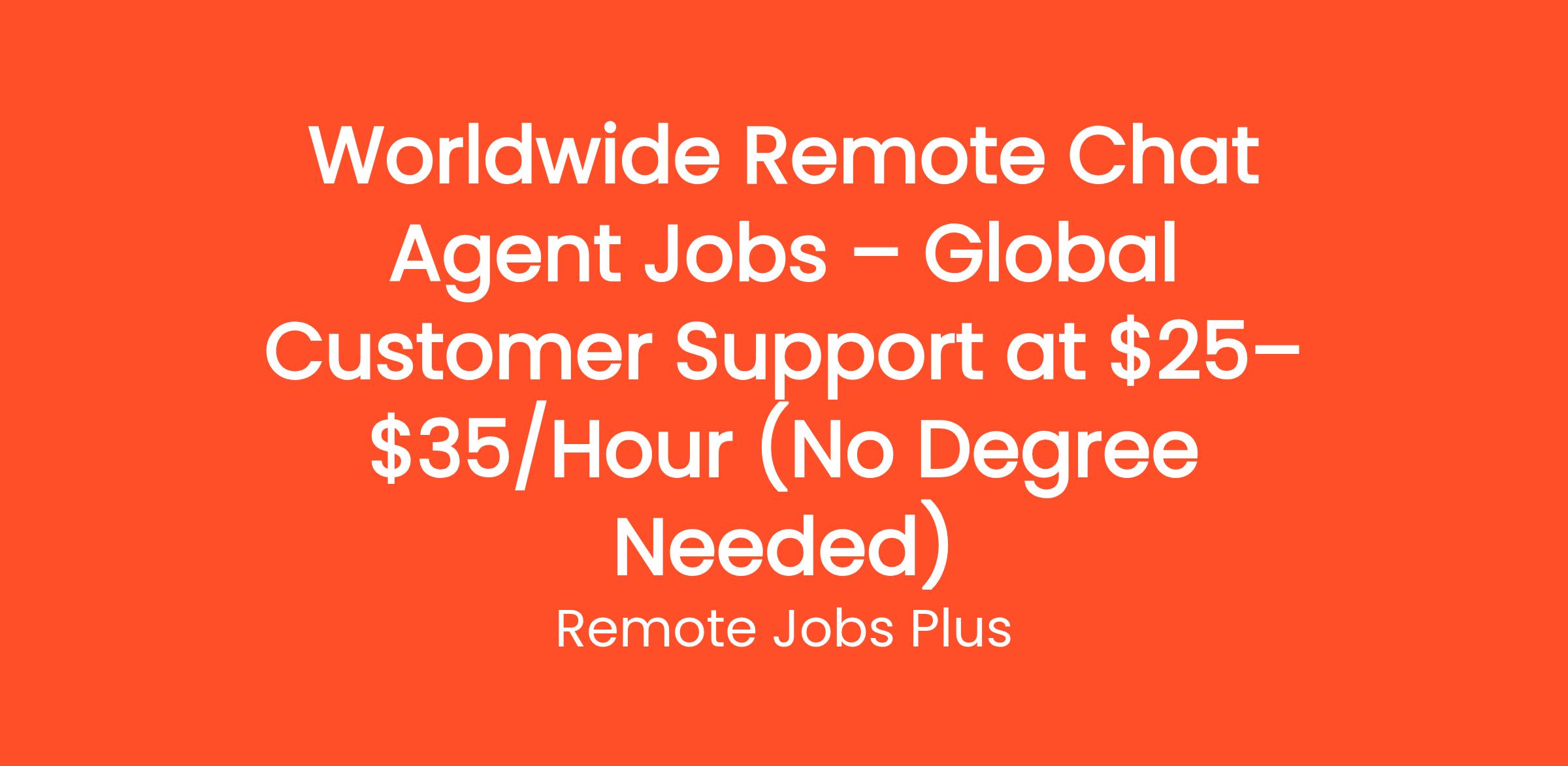 Worldwide Remote Chat Agent Jobs – Global Customer Support at $25–$35/Hour (No Degree Needed)