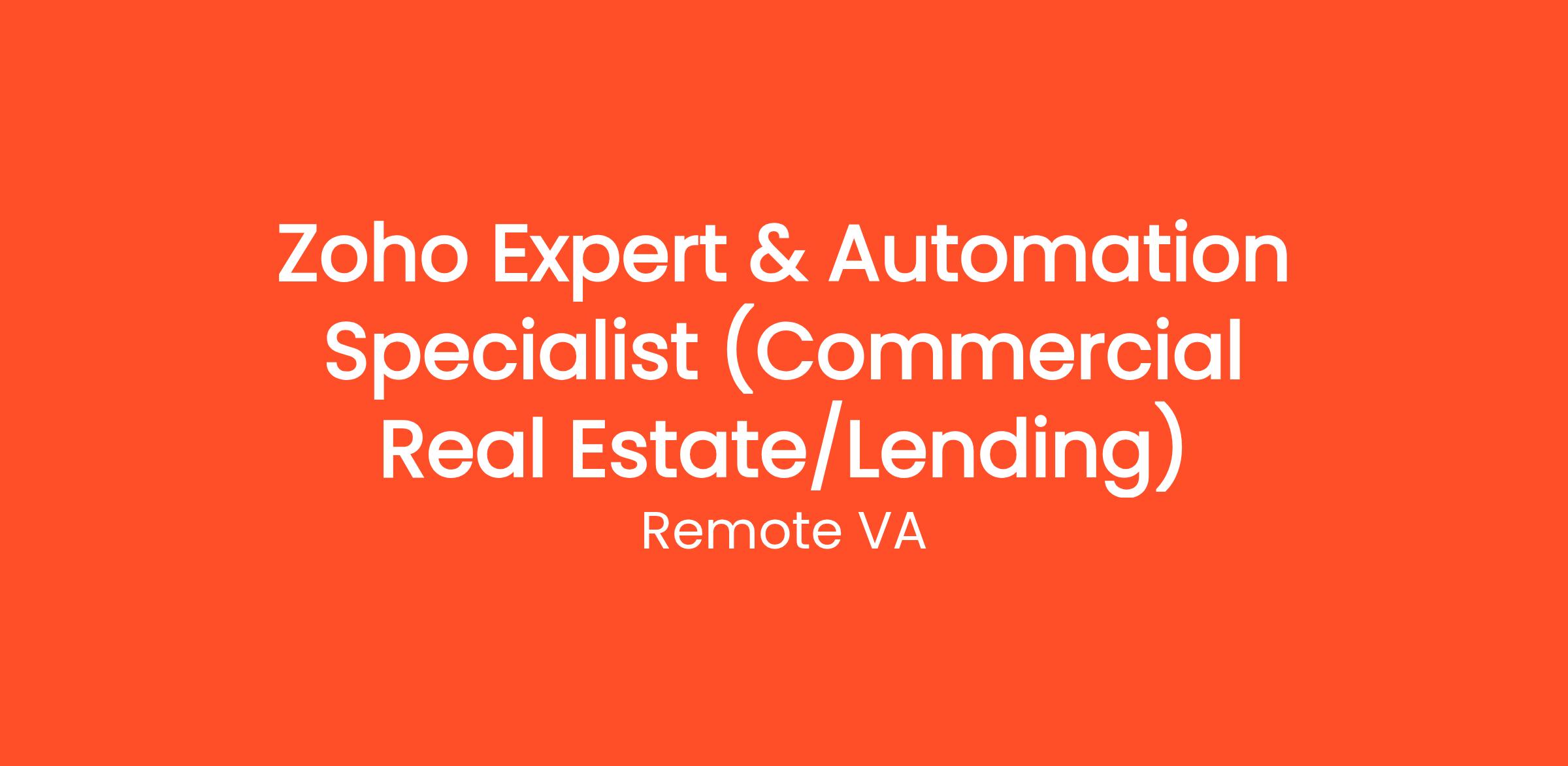 -Required: Prior project experience within the commercial real estate or lending industry using Zoho solutions.